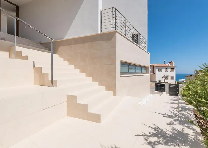 Villa Es Falcons dysponuje tarasem z widokiem na morze oraz sezonowym basenem zewnętrznym.